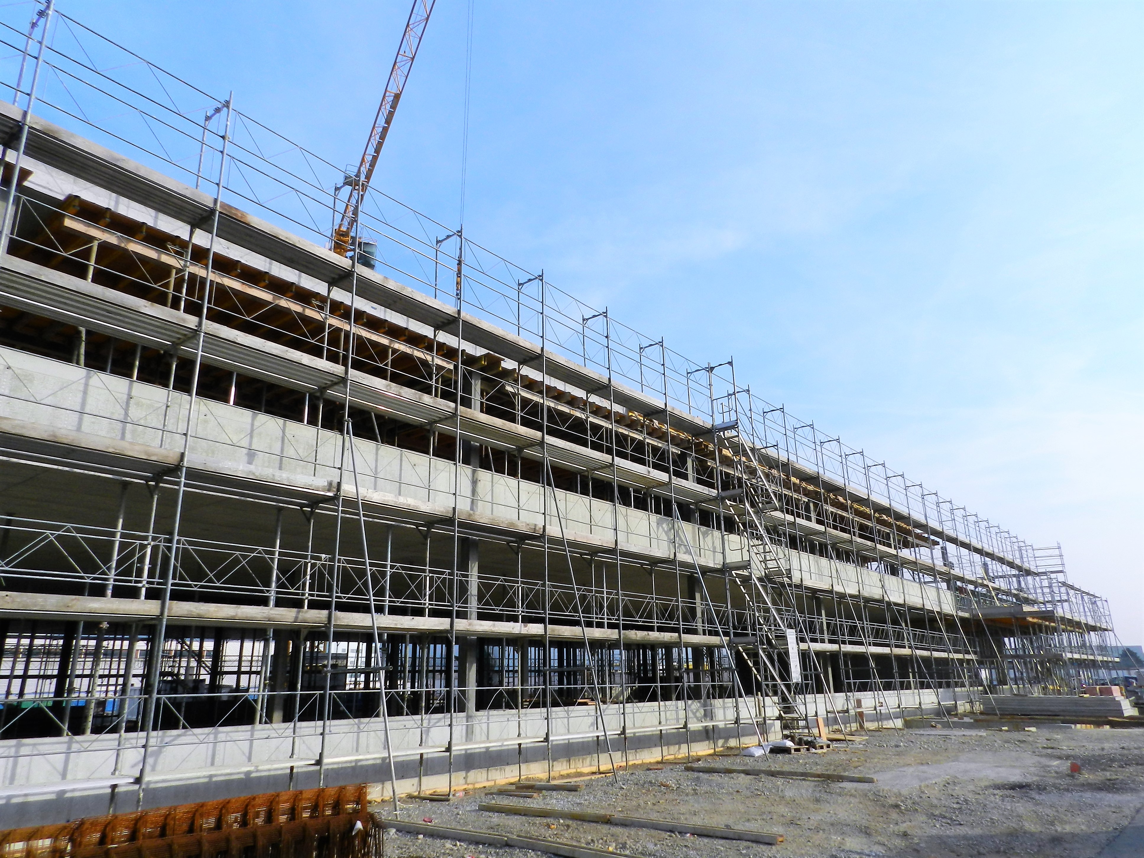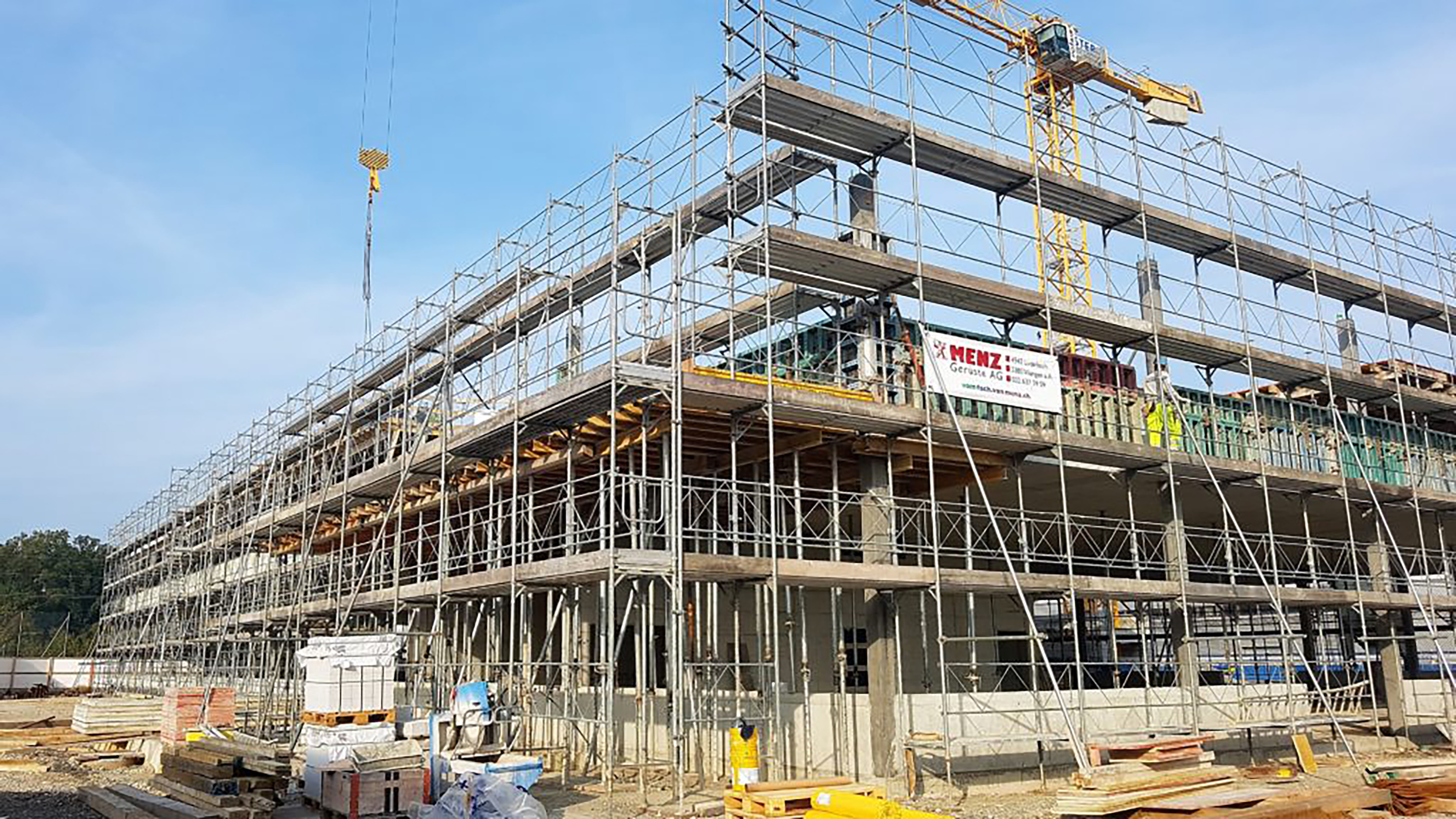 Der Neubau für die Schaffner Gruppe ist in der letzten Rohbauetappe. In den nächsten Monaten werden die Fenster montiert und das Dach abgedichtet.